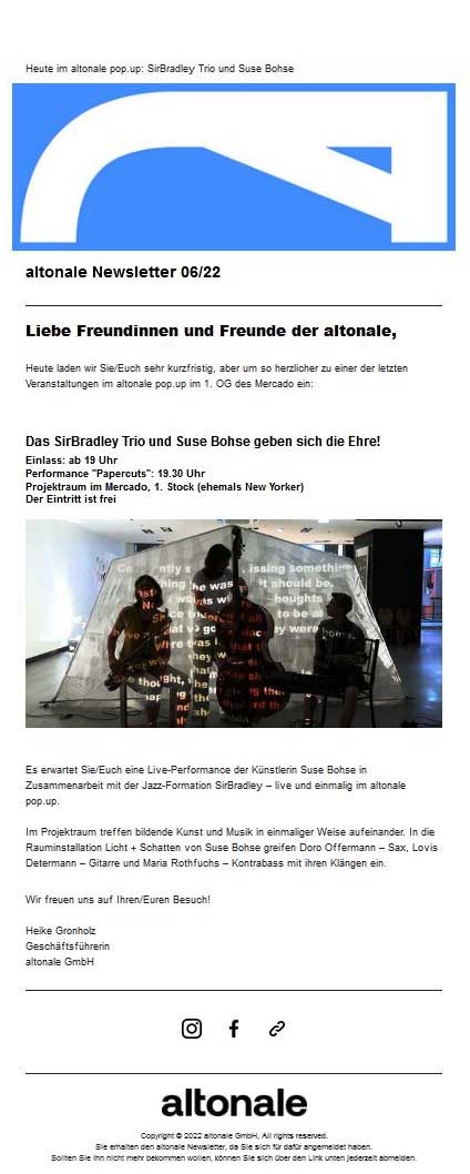 - Licht-Performance by Suse Bohse und Jazz-Improvisation by the SirBradley Trio - Lovis Determann (gitar), Doro Offermann (saxophon), Maria Rothfuchs (double-bass)